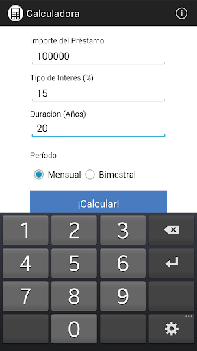 Simple loan calculator. The basic idea is to estimate the monthly or bimonthly payment knowing the total loan amount, interest rate and the time you have to repay the loan.