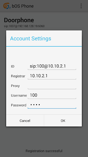 - The ID filed should be set to your SIP address (e.g. sip:myname@myregistrar.com).