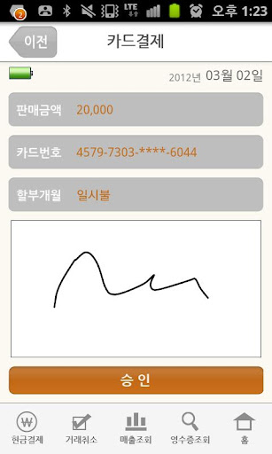 beSMART를 통하여 읽은 카드 정보는 스마트폰 통하여 카드 결재가 이루어 집니다.