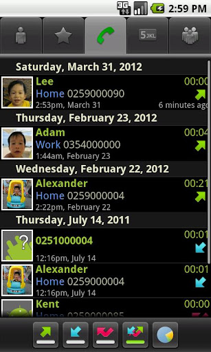 - 檢視群組、聯絡人或號碼的通話記錄,並可依天數刪除