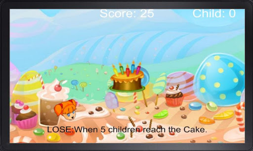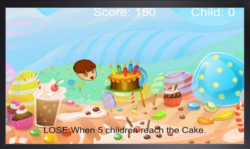 Protect the chocolate cake from the children that want to take a bite. As the game proceeds it