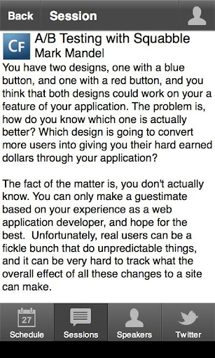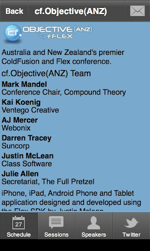 Android phone conference schedule for Australia and New Zealand's premier ColdFusion conference. The conference will be held on the 1st and 2nd November 2012.