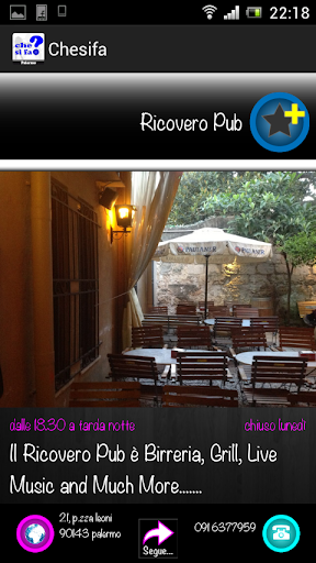 -Crearti una lista di preferiti da consultare in ogni momento in modo d’avere sempre a disposizione i dati necessari per ritrovare un locale che ti è piaciuto o per condividerlo con i tuoi amici. Allora che si fa a Palermo ?