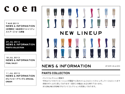 ユナイテッドアローズグループから生まれたカジュアルブランドcoen(コーエン)の公式アプリ。