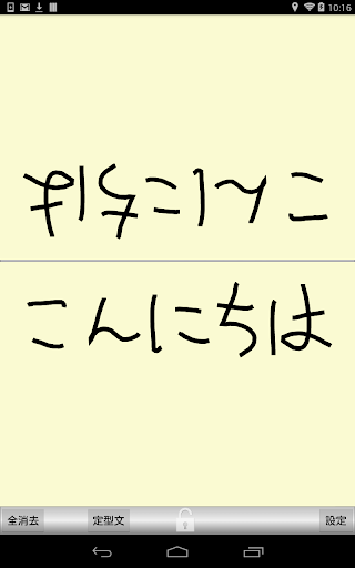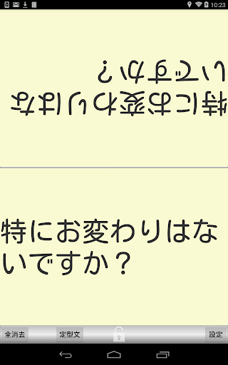 2画面モードでは、片方の画面に書いた文字が反対側に180度回転した状態で相手側が見やすい向きで表示されます。