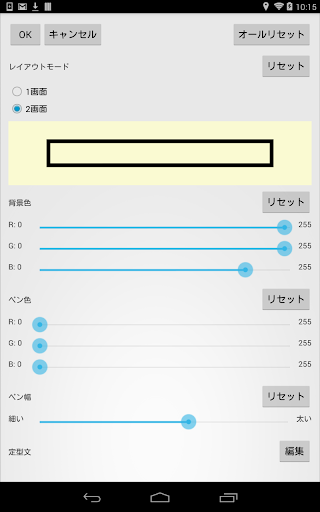 設定画面では、背景色、ペンの太さ・色を変更する事ができます。