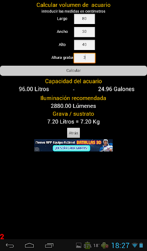 Esta aplicación consta de una calculadora, con la cual puedes saber el volumen de litros de agua de capacidad, como de lúmenes de luz recomendable/orientativo para plantas de luz media.