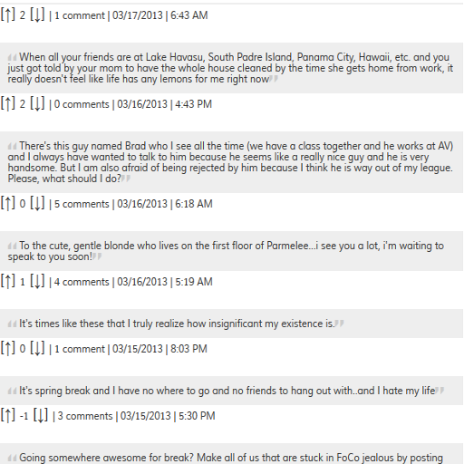 This is the official Android app for csuconfessions.co, Colorado State University's home of confessions, missed connections, and secrets.