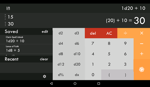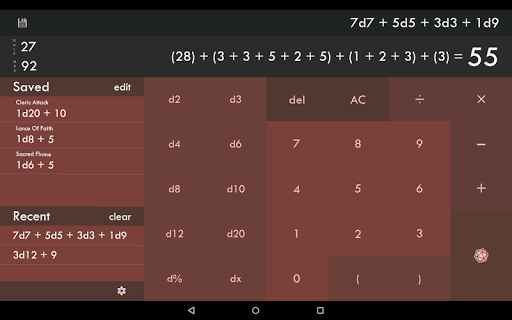 - "dx" button lets you roll any type of dice needed.. ever need a d7?