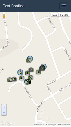 - Map View with GPS Pins dropped for each customer record that visually represents the appropriate status.