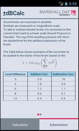 dBCalc is a simple logarithmic calculator for adding and subtracting decibel levels.