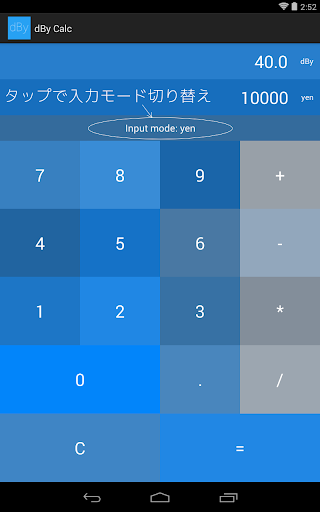日本円(yen)を1円を基準としたデシベル単位(dBy)【でしべるえん】に変換して計算できる電卓です。
