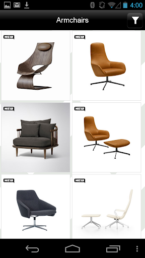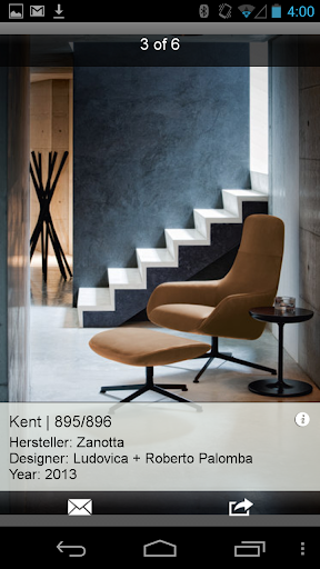 For each product you will find images of its variants and typical applications, and also have the possibility of enquiring directly about catalogues, prices and stockists. The intuitive navigation – by product group, manufacturer, designer or free text search – provides you with fast search results anywhere and at any time. As a result, the app is perfect for private design enthusiasts, or for business use by planners or architects.