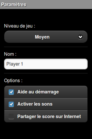 pourrez définir le niveau de jeu dans les paramètres.