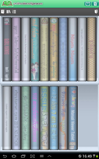 e-Book SNRU. It also provides features that help users storing and selecting varieties of books. With its systematic categorization management, the items in the library will be categorized into types: newspapers; books; magazines; photo albums; and catalogs. They can be further searched with alphabetical keyword index. The contents of the library can be displayed by: titles display covers, spine or name list.