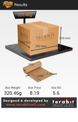 eBox is simple to use and packed with all the power you need to calculate weight, price, bursting strength, cut size & deckle size of a box by providing simple parameters like size, GSM and Bursting Factor (BF).