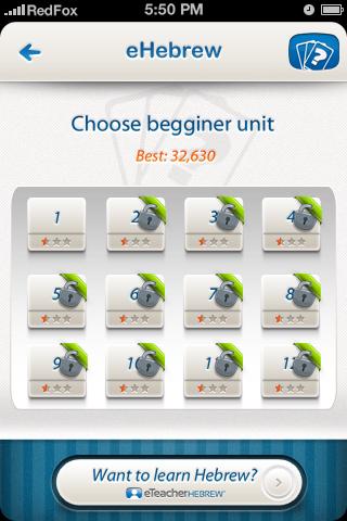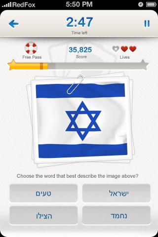 The app has two different play modes, practice and quiz, with the added competitive bonus of playing against others and the chance to rank. The app offers three different levels of Hebrew language difficulty: beginner, intermediate and advanced. Each level consists of ten units, which display a variety of trivia questions for the user to enjoy.