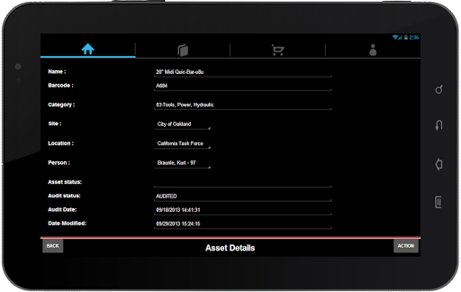 eQuip! Mobile Asset Manager makes it easy to find equipment located in sites and locations in your enterprise. This Android application is used to work remotely to find, inventory and audit equipment at your locations. Using a built-in camera barcode scanner, you can read asset tags and identify the equipment, or verify that the equipment is at the location where it is specified. It’s a simple, touch oriented UI that allows you to quickly navigate to your sites and locations.