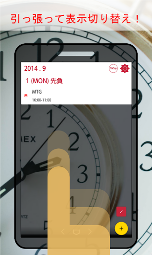 一日の予定リストを下に引っ張るとカレンダー部分をカンタンに表示切り替えできます。