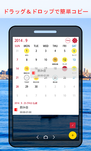 リストの予定部分を長押しすると予定がドラッグできるようになるので、予定をコピーしたり、移動したり、削除したりといった動作を1ステップでおこなえます。