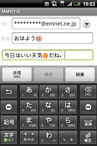 本アプリをインストールすることにより、「○○○@emnet.ne.jp」および「△△△@emobile.ne.jp(emobileメール)」を利用したメール(MMS)の送受信が可能です。