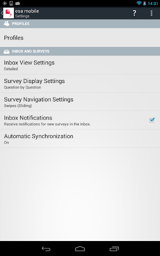• Warnings support – esa mobile v1.1.0.0 supports data consistency checks and spell-check warnings, making survey completion easier and more streamlined.