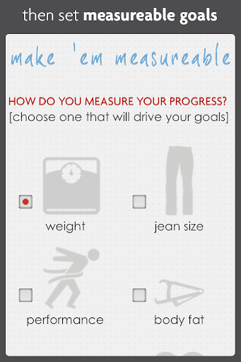 * Sharing options to post the 12-week goal statement on social networks so friends and family can hold you accountable
