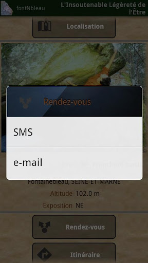 Vous pouvez également fixer des rendez-vous par SMS ou courrier électronique, avec des liens vers Google Maps ou l’appli fontNbleau elle-même, et aussi constituer votre liste personnelle de passages de blocs réussis ou à essayer.