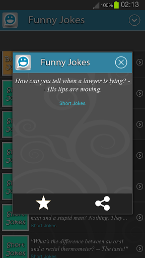 ★ You can share the jokes with friends by sms, whatsapp, facebook, or email. In this free app you're guaranteed to find a Hilarious Joke to put in your Facebook status or send it via text message.