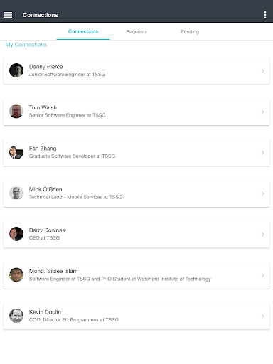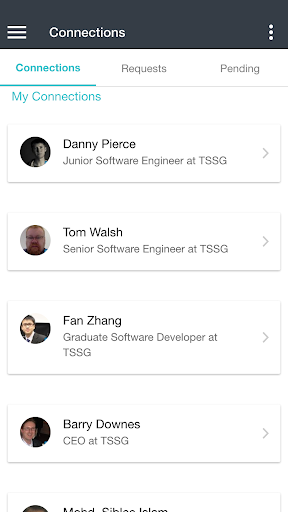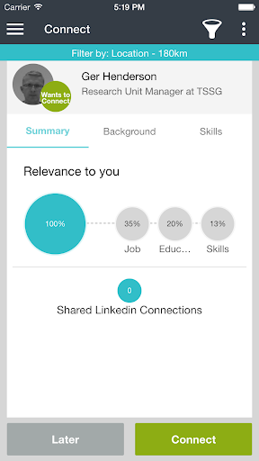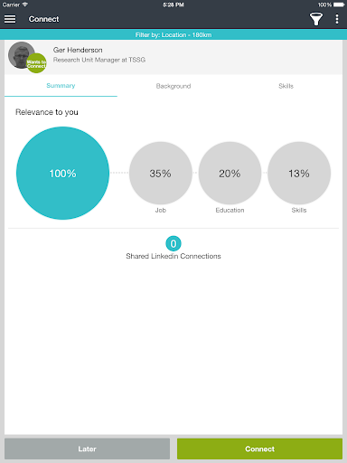 2. Connect - once you identify a person you want to connect with, simply swipe to request to make a connection. When this person does the same you are connected.