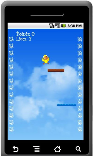 try to make your way as you go down away from the barriers, but rely on them to stay on the screen, and stay away from the blue barriers!