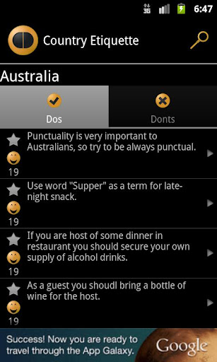 Dos and Don’ts is an application with a growing database of cultural information from many world countries. Our goal is to complete our database with information from all world countries in near future. Our database is built up by all Dos and Don’ts users, as well as by the globYo team.