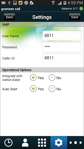 After downloading and installing the grameen call dialer, open the application and follow the simple wizard to set-up the grameen call dialer.