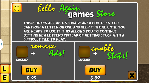 But don’t worry, even if don’t like to race the clock, hello Words is for you too! The timer can be disabled in either difficulty setting – beginner or expert. Whether or not the clock is ticking, you must score enough points to reach the next level by free-forming words on the board. In expert mode, you must also use all tiles from the tile bag before you can move on. If you use all of your tiles before you've scored enough points, rearrange your tiles to form different words.