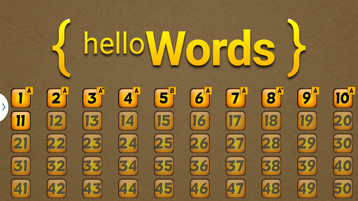 hello Words is a single player game which players arrange tiles onto a board forming words in groups of at least three. The object of the game is to score enough points before the timer runs out!