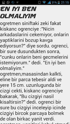 sıkıldığınız zaman okuyabileceginiz bolca hikayeler mevcuttur. ilk android uygulamam oldugu icin onerilerinizi iletmeniz beni oldukca memnun eder