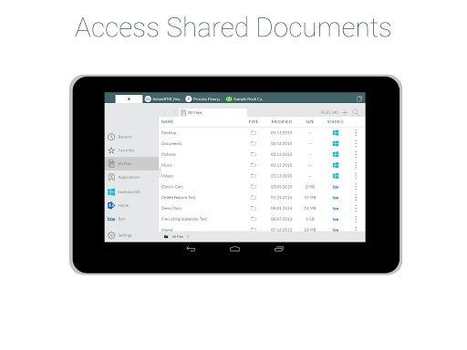 A quick installation of the hopTo Work Agent on your Microsoft Windows desktop or server host provides all the back-end functionality you need. Install the hopTo Work app on your user's Android tablets and instantly connect to all your files, legacy applications, SharePoint sites, network shares and cloud services.