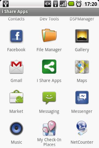 Keyword: Android Market, share apps, new apps, Bluetooth, Facebook, Gmail, Messaging, Facebook Messenger, Barcode, WhatsApp, wireless, application