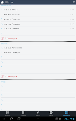Составьте расписание ваших уроков. Фотографируйте домашку прямо с доски, записывайте его на встроенный диктофон или внесите текстом. Добавляйте заметки по предметам. Не можете дождаться конца урока? iШкола покажет вам сколько еще осталось ждать! Приложение также напомнит вам и о печальном - начале урока, за 2 мин. Вы даже можете постить домашку в ВКонтакте, или передать ее через голубой зуб.