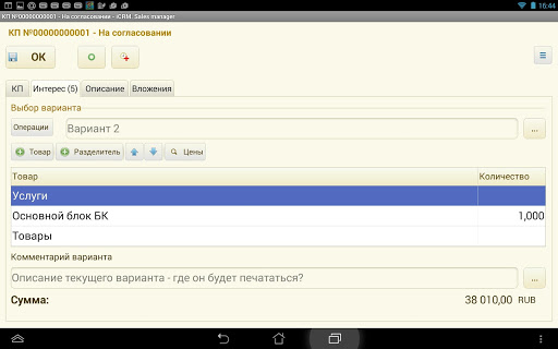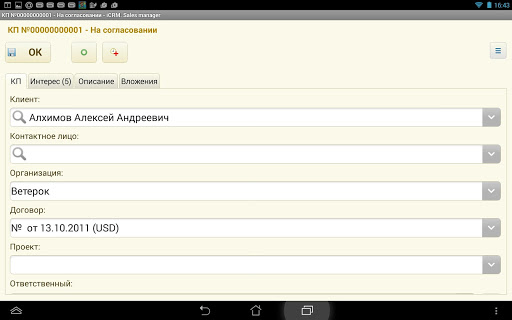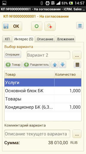 - отражение интереса клиента с возможностью выставления коммерческого предложения и отправки его на согласование в центральную CRM систему