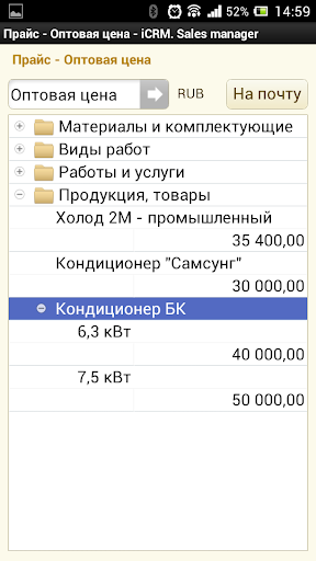 - отправка из решения прайс-листа по email
