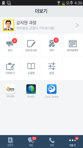 iCent Japple은 안정된 Cisco의 인프라 및 프레임 웍을 기반으로 IPT, Telepresence , Webex , Cisco Jabber와 최적의 연동으로 UC&C 통합환경을 제공하고 각 기업의 비지니스 프로세스에 따른 추가 요구사항에 커스터마이징이 가능한 국산 솔루션입니다. 실시간 그룹채팅 및 1:1 채팅을 즐길 수 있고, 회의실예약, 사진, 동영상, 파일 등의 멀티미디어 전송, 조직도 연동하는 스마트한 협업 응용 프로그램입니다