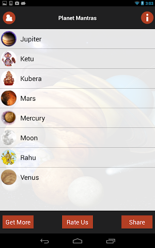 iPooja pleased to presents Planet Mantras mobile app designed and recorded specially for the Android OS. Immerse yourself in the soothing chants to melt away the stress of your day-to-day routine.