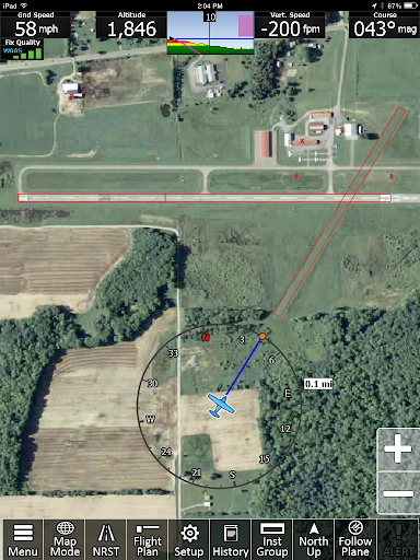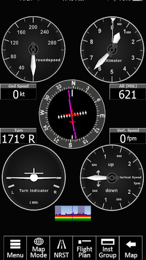 Instruments Page simulates real aircraft instruments, gathering information from GPS (or an attached 3rd party AHRS) to create familiar images. Reference instruments such as HSI, VSI, Groundspeed, Altimeter, Turn Indicator, etc. Add an AHRS and get an Artificial Horizon with Attitude Safety Alerts.