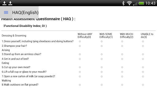 Health Assessment Questionnaire (HAQ) - Functional Disability Index (DI)