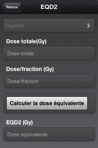 iLQ est une application permettant de calculer des équivalences de dose en radiothérapie qui utilise le modèle linéaire quadratique. L'utilisateur peut sélectionner un organe à risque (moëlle, cœur, poumon, foie, etc) ou choisir le rapport α/β de son choix.