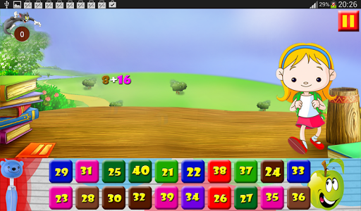 This app deals with recognizing the dropping calculations like 1+4, 5-3, 8*2, 9/3 etc. the kid needs to identify the numbers, calculate them & click on the correct answer in key pad.