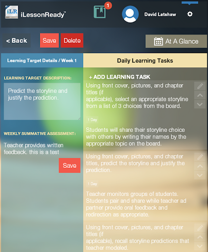 iLessonReady now integrates the Common Core Standards using a dropdown selection process. This helps teachers unpack Standards into meaningful 30 Day Learning Goals and then align weekly and daily lessons to this goal. iLessonReady helps teachers ensure that students are engaged in learning that specifically aligns to achieving a complex skill defined by the Common Core Standards. The engagement occurs as teachers are creating: