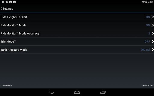 The iLevel App allows you to control all functions of your AccuAir e-Level Air Suspension Controller through the iLevel WiFi module available for purchase at www.accuair.com