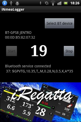 Start iNmeaLogger, select til right Bluetooth device and press start.